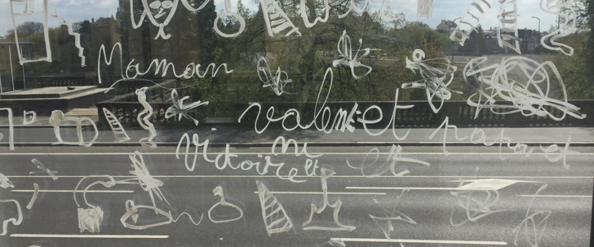 Un alphabet secret a été crée par les participants au workshop. Les enfants ont imaginé une installation dans l'espace l'aquarium. Des messages secrets ont été inscrits sur les murs, des textes qui interrogent aussi bien les visiteurs du casino que les passants dans la rue.