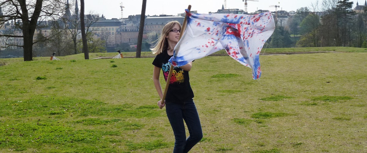 Red-white-blue? Wash and bleach, please! With the artist Claudia Passeri you will question design and the use of the national flag. Each participant will develop a new symbolic and produce his own flag.