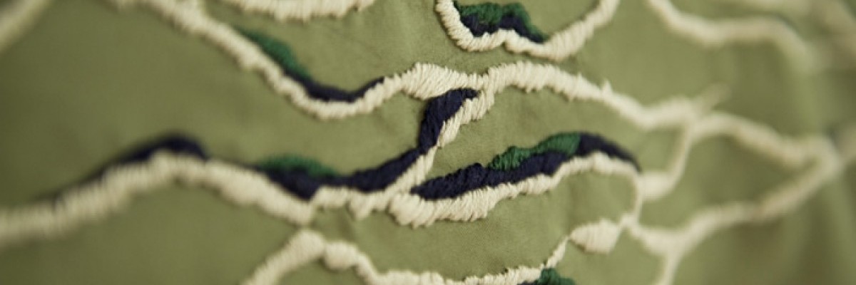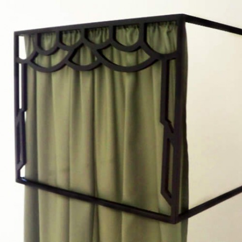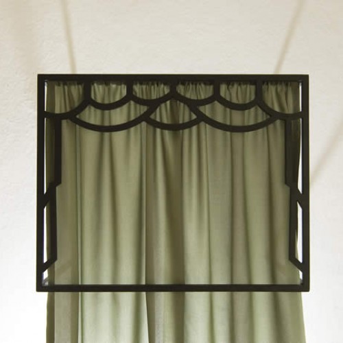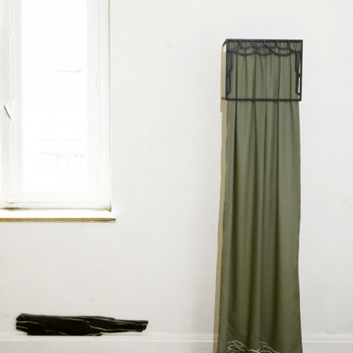 Gibigiane, 2008, Black painted steel structure and embroidered curtain, 165x30x30 cm ,Studio of JeanChristophe Massinon, Maxéville, Nancy