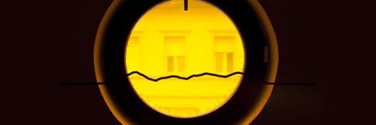 Rosso di sera bel tempo si spera Installation : Laser-cutted steel and colored filter on window, 100 cmCentre d’Art Dominique Lang, Dudelange 2012