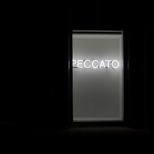 Jusqu’à ce que le néon s’éteigne, chaque passant y trouvera une signification personnelle, morale, religieuse ou simplement le reflet des erreurs et regrets du passé. Peccato provoque l’introspection et par la suite, peut-être, un départ que l’on espère plus fort de ces constats.
