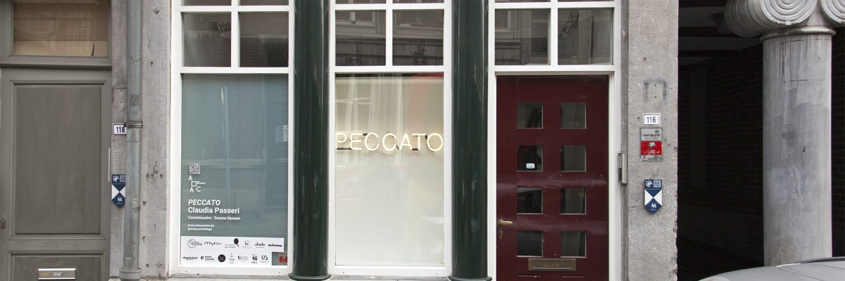 L’œuvre de Claudia Passeri, Peccato, se présente dans un environnement neutre, le fond est monochrome, les lettres sont blanches, la police de caractère est nette, presque tranchante. Dépourvu de l’emphase émotionnelle, il est un mot blanc, froid qui tombe.
