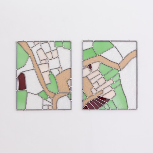 Chaque Parcelle est une représentation topographique et allégorique, une carte du tendre en vitrail dont on aurait effacé le nom des lieux. Les champs de Scheggia deviennent insituables, de même que le centre du village et ses hameaux dépeuplés. Le paysage est ici évoqué en tant que concept, à travers sa nature immatérielle – le paysage comme objet idéel, infini, qui n’existe que par le regard critique et subjectif –, et paradoxalement terriblement concrète – le visible topographique, le territoire cadastral dont on hérite, que l’on cultive ou abandonne, où la famille a vécu, où l’on vit, ses chemins bornés.